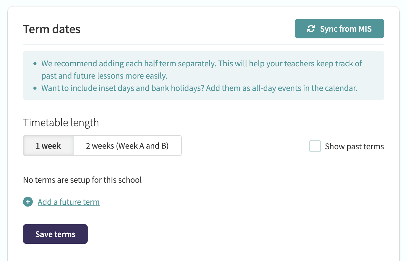 - Your term dates have not been set:
