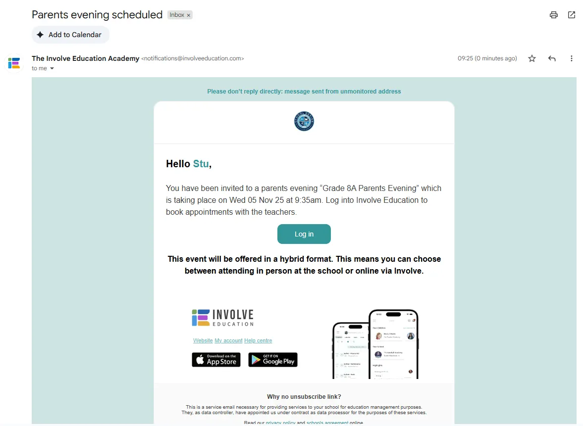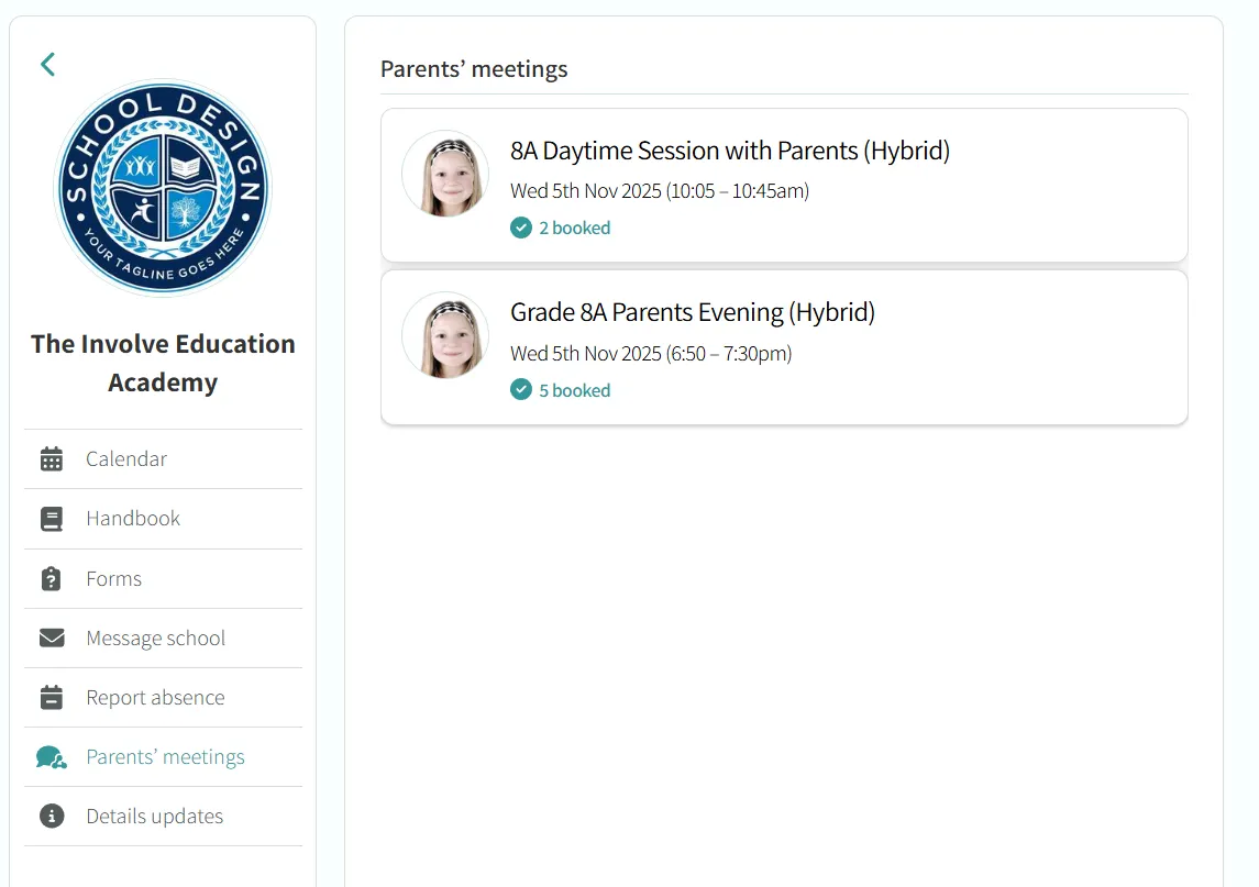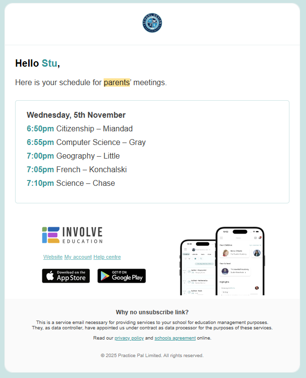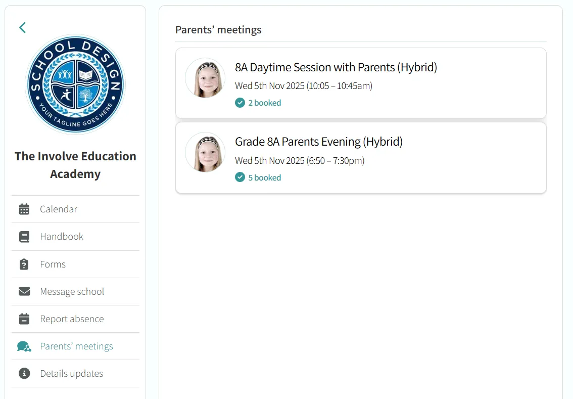 - Parents who have booked a slot will be reminded of the Parents’ Meeting: