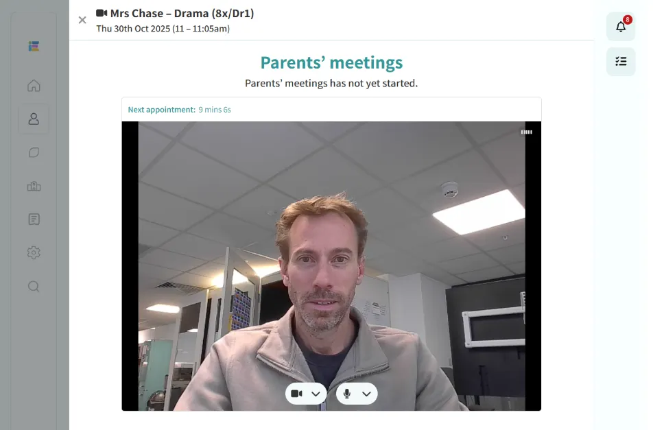 10 minutes before the appointment starts, the parent can log into Involve School Portal, go to the Parents’ meeting section and click on the event.