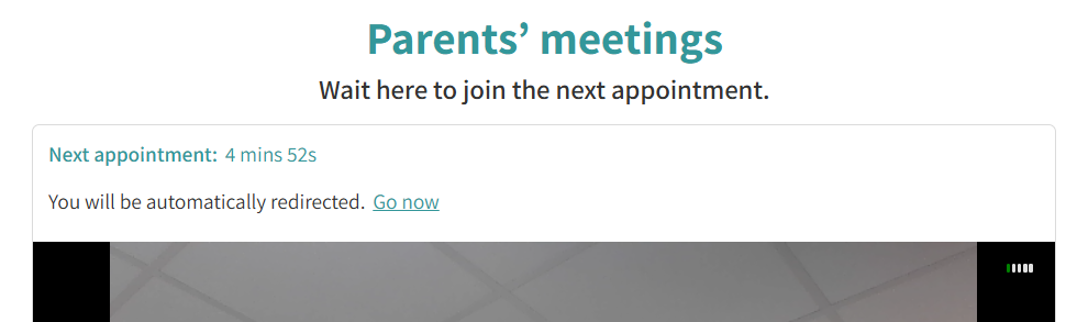 Finally, a countdown will be displayed as the meeting nears its completion time. If the next meeting is scheduled directly after, the parent will be automatically redirected to this next meeting.