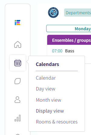 Hover over the Calendar icon in the main left-hand navigation. Select the "Display View" menu from this hover-over menu.