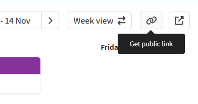 Once you have the calendar filtered to show the information you want to share, click the "get public link" button.